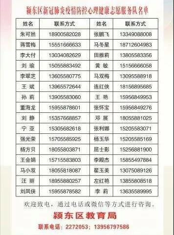 新冠肺炎疫情發(fā)生后,潁東區(qū)教育局迅速將大家組織起來,成立了由32位志愿者組成的抗擊疫情志愿者服務(wù)隊。區(qū)教育局先是通過微信公眾號將大家推送出來,為全區(qū)教育系統(tǒng)廣大師生提供公益服務(wù)。隨著形勢的發(fā)展,根據(jù)上級安排,這支隊伍立即開始面向全區(qū)廣大人民群眾開展抗擊疫情志愿服務(wù)公益活動。目前,該服務(wù)隊正跟有關(guān)當(dāng)面對接,除了做好中國中鐵阜陽中心醫(yī)院隔離人員的心理干預(yù)外,隨時根據(jù)需要開展重點人群心理健康公益服務(wù)活動。他們一邊服務(wù)一邊接受網(wǎng)上培訓(xùn),并認(rèn)真開展學(xué)習(xí)和討論,確保為服務(wù)工作專業(yè)、有效、深入人心。